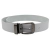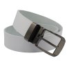 Klasický dětský kožený opasek z bílé kůže bez prošití. Kovová spona bez obsahu niklu v lesklé tmavé úpravě je šetrná k pokožce a minimalizuje riziko alergických reakcí.
