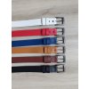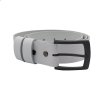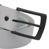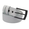Kožený pásek z bílé kůže. Spona opasku je kovová ze zinkoslitiny (povrchová úprava kartáčovaný černý nikl). Kožený opasek je díky své barvě a provedení určen jak pro ženy, tak pro muže. Vhodný do společenských kalhot, jeansů a volnočasových kalhot.
