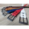 - Délka: měřeno od hrotu trnu spony po 3. dírku od konce opasku = obvod "pasu" v místě, kde nosíte kalhoty, pro které je pásek určen
