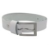 Kožený pásek z bílé kůže. Spona opasku je kovová ze zinkoslitiny, bez obsahu niklu, který nejčastěji způsobuje kožní alergie. Kožený opasek je díky své barvě a provedení určen jak pro děvčata, tak pro chlapce. Vhodný do společenských kalhot, jeansů a volnočasových kalhot.
