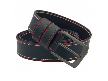 Kožený pásek z černé kůže. Spona opasku je mosazná, zlatá, testována na nikl. Kožený opasek je díky své barvě a provedení určen jak pro ženy, tak pro muže. Vhodný do společenských kalhot, jeansů a volnočasových kalhot.