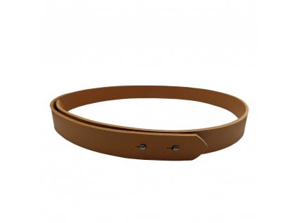 Kožený opasek z hnědé kůže bez prošití s pochromovanou sponou. Ruční výroba v ČR.
