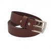 Kožený pásek z hnědé kůže. Spona opasku je kovová ze zinkoslitiny, bez obsahu niklu, který nejčastěji způsobuje kožní alergie. Kožený opasek je díky své barvě a provedení určen jak pro ženy, tak pro muže. Vhodný do společenských kalhot, jeansů a volnočasových kalhot.