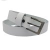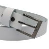 Kožený pásek z bílé kůže pro děti (dívky i chlapce). Spona opasku je kovová ze zinkoslitiny bez obsahu niklu, který nejčastěji způsobuje kožní alergické reakce. Použití doporučujeme do oblekových a společenských kalhot, ale lze ho použít do jeansů a volnočasových kalhot. Díky své bílé barvě je vhodný také pro zdravotníky.