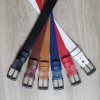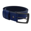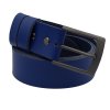 Kožený pásek z modré kůže. Spona opasku je kovová ze zinkoslitiny (povrchová úprava kartáčovaný černý nikl). Kožený opasek je díky své barvě a provedení určen jak pro ženy, tak pro muže. Vhodný do společenských kalhot, jeansů a volnočasových kalhot.