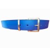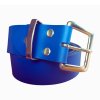 Kožený pásek z modré kůže. Spona opasku je mosazná, zlatá, testována na nikl. Kožený opasek je díky své barvě a provedení určen jak pro ženy, tak pro muže. Vhodný do společenských kalhot, jeansů a volnočasových kalhot.