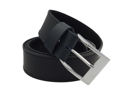 Kvalitní kožený opasek z černé hovězí kůže s decentním prošitím černou nití.