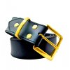 Kožený opasek z černé kůže s černým prošitím a mosaznou sponou bez obsahu niklu. Ruční výroba v ČR.