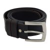 Kožený pásek z černé kůže s prošitím hnědou nití. Spona opasku je z nerezové oceli. Kožený opasek je vhodný do jeansů a volnočasových kalhot.