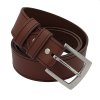 • Stylový kožený opasek z hnědé hovězí kůže s kontrastním prošitím černou nití.