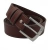 Kožený opasek z hnědé kůže se šedým prošitím a nerezovou sponou. Ruční výroba v ČR.