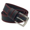 Kožený opasek premium, kůže navy, prošití červené, jednotrnová spona, leštěná hranatá, nerez