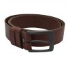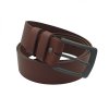 Kožený opasek z hnědé kůže bez prošití s hranatou broušenou sponou v černé barvě. Ruční výroba v ČR.