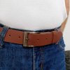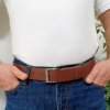 Kožený pásek z hnědé kůže. Spona opasku je kovová ze zinkoslitiny bez obsahu niklu, který nejčastěji způsobuje alergické reakce. Kožený opasek je díky své barvě a provedení určen jak pro ženy, tak pro muže. Vhodný do společenských kalhot, jeansů a volnočasových kalhot.