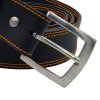 Kožený opasek v XXL délkách z černé kůže s dvojitým prošitím oranžovou nití. Spona opasku je z leštěná z nerezové oceli. Ruční výroba v ČR.