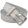 Kožený opasek premium, kůže bílá, prošití šedé, jednotrnová spona, leštěná hranatá, pochromovaná